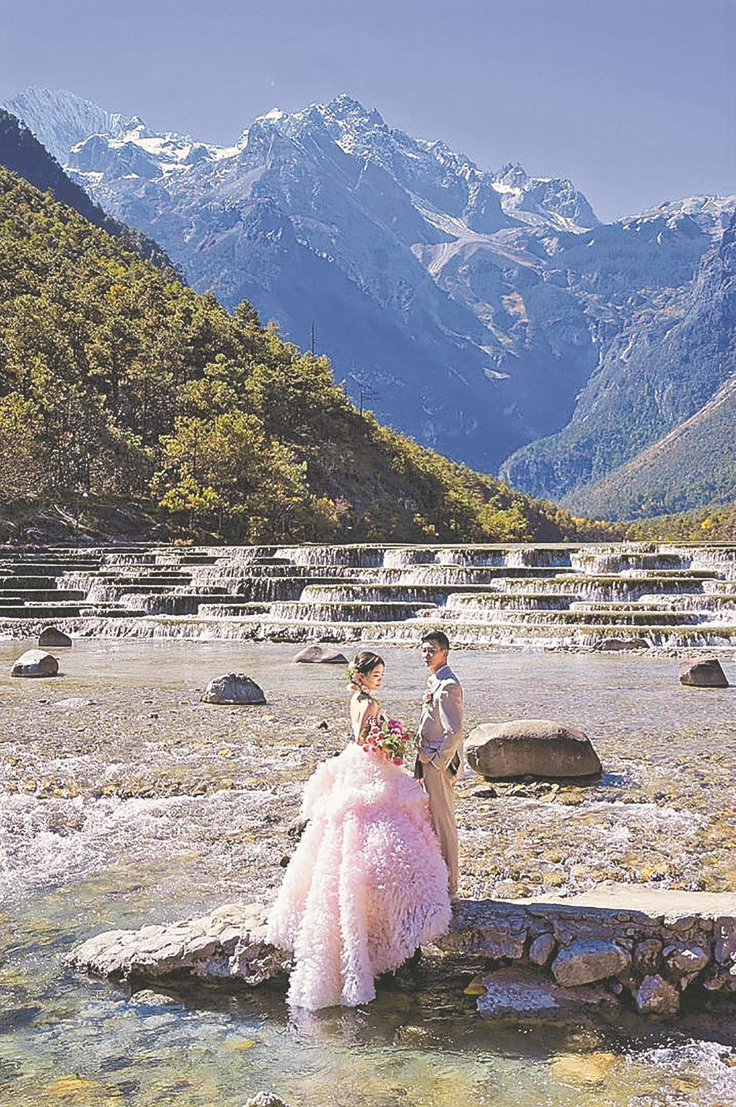 丽江自古就是“南边丝绸之路”和“茶马古说念”重镇,算作宇宙唯一领有三项世界遗产的地级市,这里的当然情景与民族文化为旅行婚典产业的发展提供了丰富的资源。比年来,丽江以“雪山圣境和纳西婚俗”为中枢,倾力打造“旅行婚典首选意见地”,完善“婚拍—庆典—蜜月”全链条做事。现在,全市有干系企业150余家,2024年招引10万对新东说念主前来举办婚典、拍摄婚纱照,婚拍市集界限冲破8亿元。