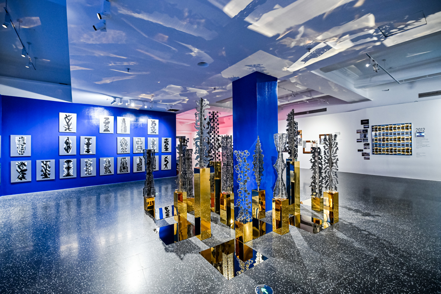 展览以白与蓝的不同颜色串起两位艺术家越过数十年的创作轨迹与信守。