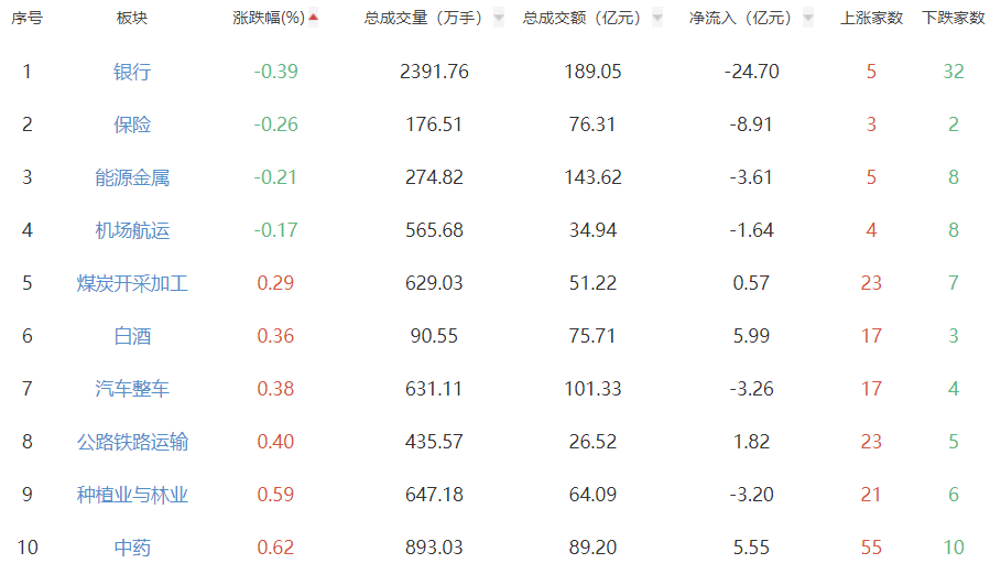 A股商场板块涨跌幅名次