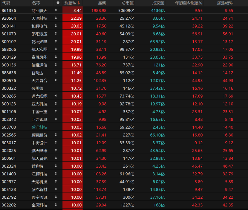 贸易航天板块爆发