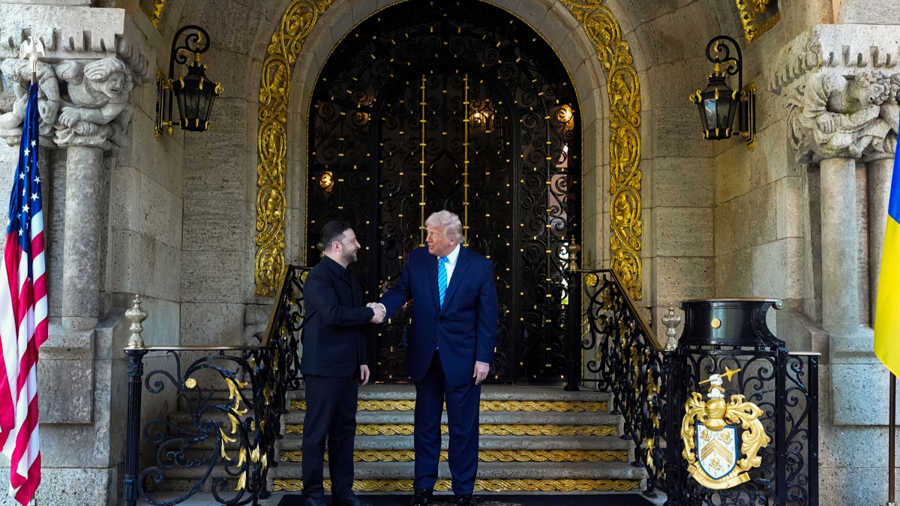 2025年12月28日下昼,好意思国总统特朗普在好意思国佛罗里达州海湖庄园同乌克兰总统泽连斯基举行会晤。 新华社发